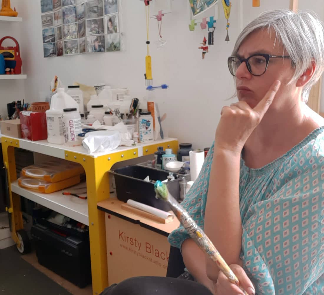 Kirsty Black is an abstract artist based in Auckland, New Zealand. She creates dynamic adventures in colour often with a mischievous twist, using freeform brushstrokes to convey a sense of escapade, of romping across the canvas with joyful abandon.